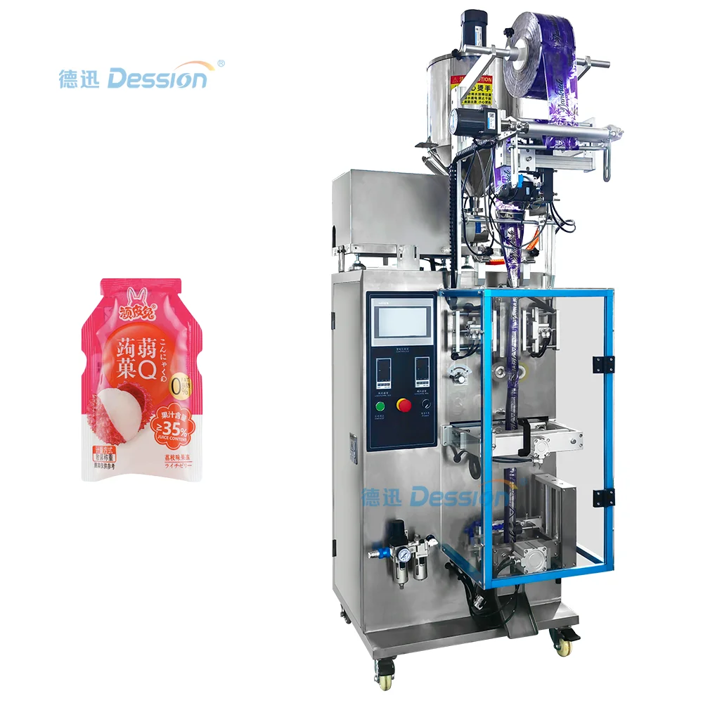 يمكن لآلة تغليف كيس جيلي حزم سائل أو عجينة من الطعام والمواد الكيميائية ومستحضرات التجميل ، مثل العسل والشامبو وزيت الطهي والكريمة والكاتشب والصلصة ومعجون الطماطم والعصير.