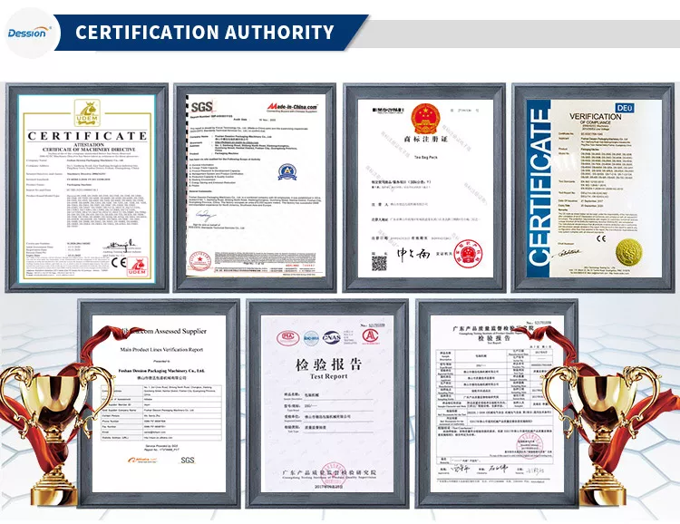 آلة تعبئة الشاي Dession مناسبة للشاي. مثل الشاي السائب وشاي الأعشاب والشاي الصحي وشاي الزهور وغيرها من الأكياس المثلثة يمكن التخلص منها.