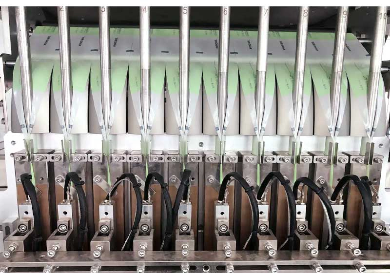(2) Seção Pneumática: Possui sistema independente de controle de temperatura. Os cilindros de vedação longitudinal e transversal permitem o ajuste de temperatura de acordo com a composição do material de embalagem, garantindo compatibilidade com diversos filmes de embalagem. A temperatura de cada linha de vedação é controlada de forma independente para evitar interferência mútua.