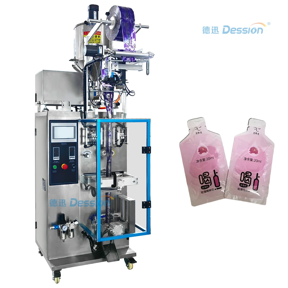 Máy đóng gói nhỏ nước uống tinh chất có thể đóng gói chất lỏng hoặc bột nhão thực phẩm, hóa chất và mỹ phẩm, chẳng hạn như mật ong, dầu gội, dầu ăn, kem, sốt cà chua, nước sốt, bột cà chua, nước uống tinh chất và nước trái cây.