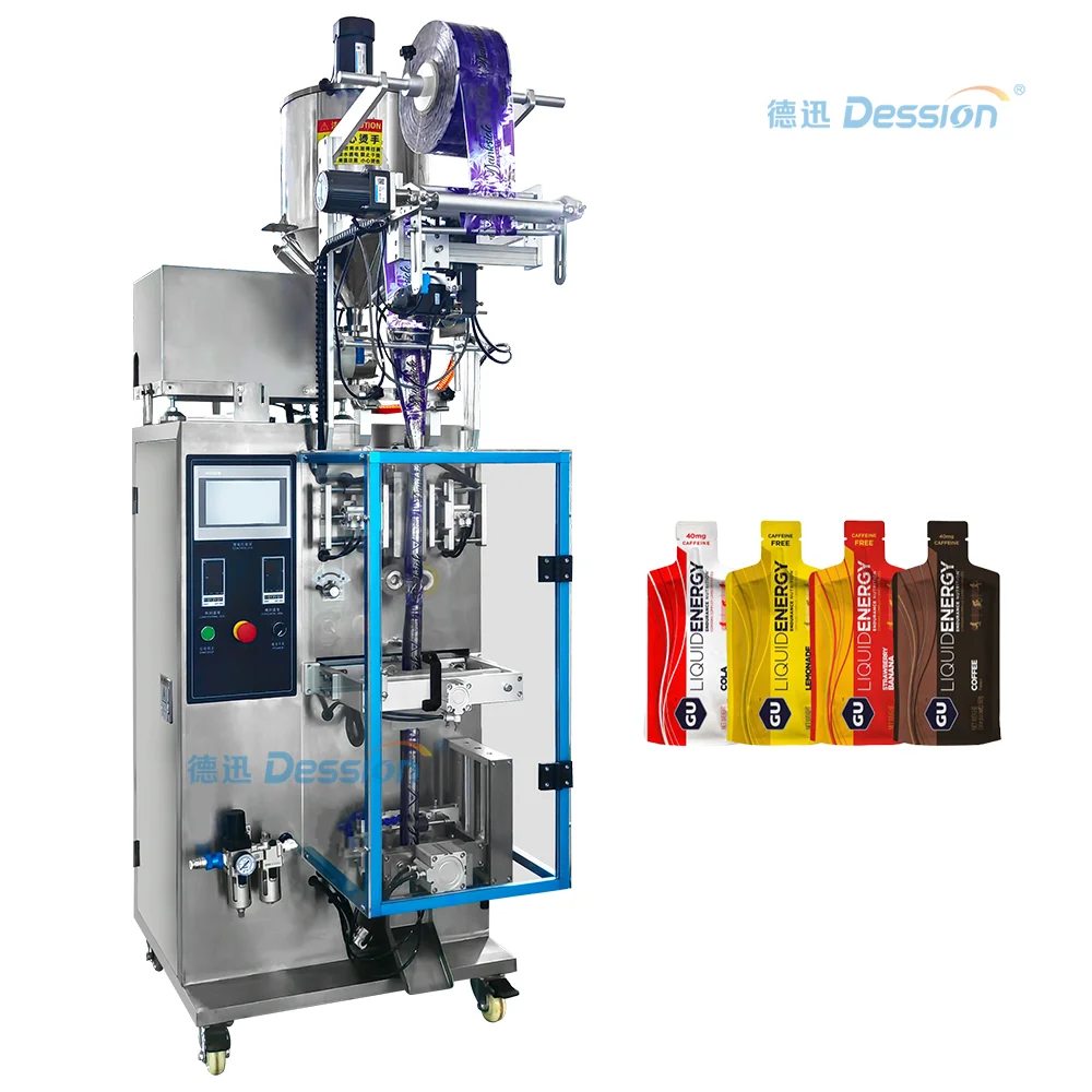 Máy đóng gói gói năng lượng lỏng có thể đóng gói chất lỏng hoặc dán thức ăn, hóa chất và mỹ phẩm, như mật ong, dầu gội, dầu ăn, kem, sốt cà chua, nước sốt, bột cà chua, năng lượng lỏng và nước trái cây.